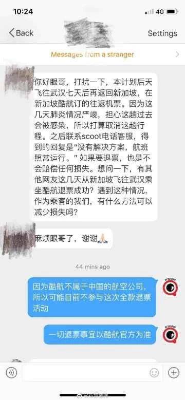 其实已经有很多人因为武汉新型冠状病毒肆虐的原因通过各种管道试图让酷航公司免责退票,但结果都不尽人意。