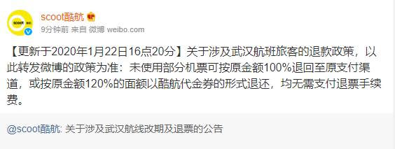 “肺炎情况严峻,我想取消武汉之旅,酷航却不让退票”