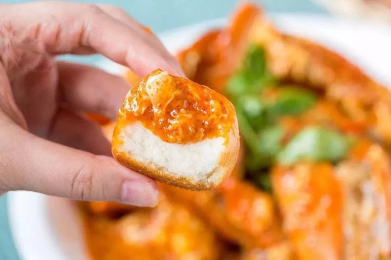 后来,有人为这道菜添加了些许复合风味,选用泥蟹或蛙蟹爆炒,用参峇酱、番茄酱和鸡蛋煮制卤汁替代了瓶装辣椒酱和番茄沙司,再用炸或蒸的馒头蘸着酱汁吃。如今,这个配方已成为新加坡辣椒蟹最常见的版本。