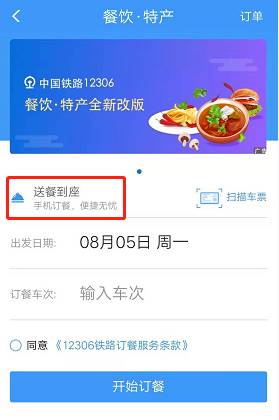 乘坐G、D字开头列车的旅客,只需在手机下载铁路部门的官方APP,12306, 扫一下车票 就可以预定列车上的餐食, 以及预定沿途外卖!