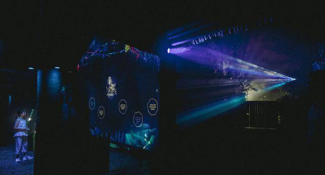 还有一个互动区域,需要你大声喊,之后灯光才会亮起来,里面有工作人员指导你如何发生,因为声音的不同,灯光也是不同的,只有正确的利用气息,灯光秀才会闪动起来。当走进萤光色的幻光雨林里面,感觉就像是走到了阿凡达的潘多拉星球一般。