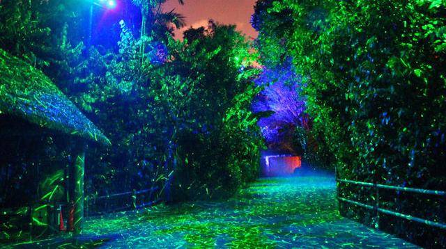 在热带雨林里面,利用各种光影技术投放出各种奇幻影像,营造出雨林的幻境,犹如在仙境一般,晚上走在动物园的热带雨林,你会看到满天繁星,满世界的萤火虫等,这些都是科技的力量。