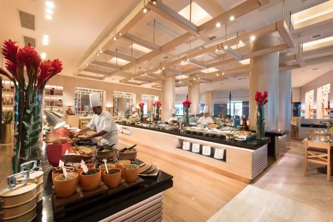 酒店拥有四家风格各异的餐厅,以满足不同旅客的爱好,您可以选择在奥斯卡餐厅品尝丰盛的亚洲和国际自助餐,到金牡丹中餐厅享用精致的粤菜,也可前往豪华的大堂酒廊享用下午茶和美味鸡尾酒,喜欢甜品的客人可以到室外咖啡厅品尝精致的甜品和招牌糕点,配上美味的咖啡和茶,绝对不容错过。