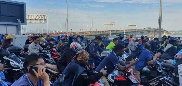 每天和丈夫骑摩哆来回新马的林佩玲(28岁,销售员)说,年关越近车龙就越长,与身旁其他摩哆骑士在长堤摩肩接踵龟速向前行。