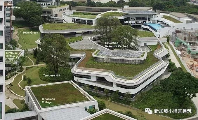 新加坡国立大学大学城(U-Town)于2011年8月投入使用,一期用地面积为19公顷,为约15000名本科生、研究生、学者和员工提供“工作、居住、娱乐”为一体的综合校园空间,南侧通过一条跨越城市高速公路的高架道路与新加坡国立大学肯特岗校区相连。U-TOWN校园首创了包括区域制冷、自然通风廊道和绿化屋面在内的整合可持续设计方法,是可持续校园环境管理的典范。