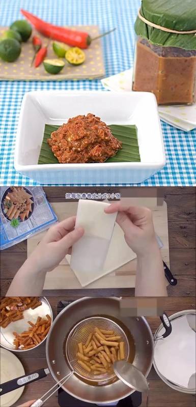 在新加坡,叁巴虾米春卷被称为“一旦爱上,就会时时思念”的“男友”零食。