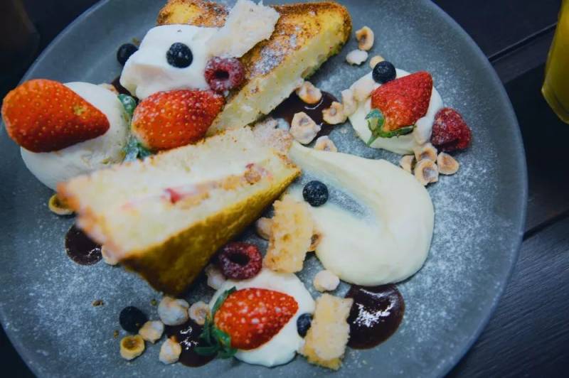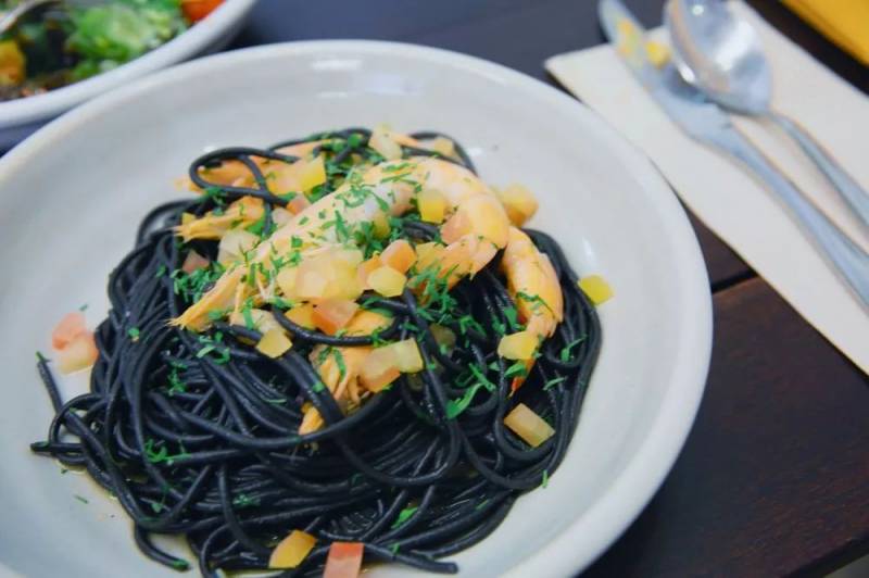再往店里深入是个仿佛食堂一样的餐厅,从早晨8点营业到晚上,菜品颜值在线,味道也可圈可点:辣味海虾墨鱼面清爽又美味,颜值担当的stawberry cheesecake french toast,火炽后厚烧吐司加上冰激凌和草莓,吃一口幸福爆棚。