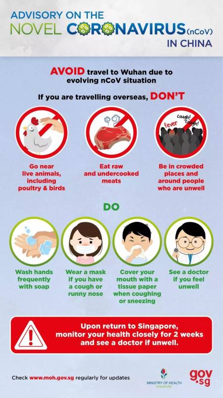 新加坡卫生部提醒所有中国旅客密切留意健康状况,不论在当地还是回到新加坡后,若有不适,立即求医,并向医生呈报出行记录。 在此再次提醒大家要注意以下这些预防病毒措施,让大家都能更好地保护自己和身边的人。