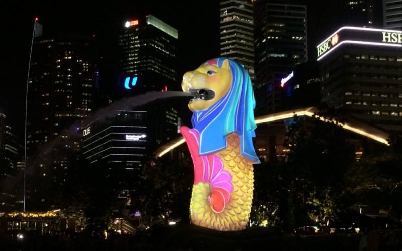 令人惊艳的鱼尾狮光影秀