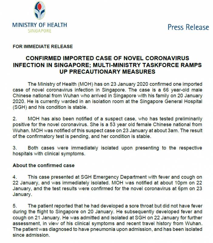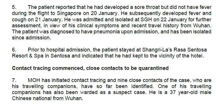首先,新加坡确诊的第一起病例患者是一名66岁的武汉游客,在1月20号晚间搭乘南方航空从广州抵达新加坡。登陆后没多久就开始出现咳嗽、发烧等症状。