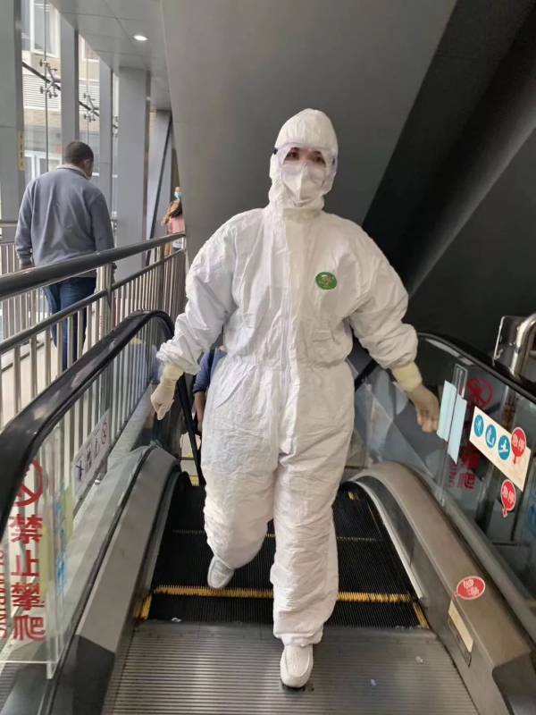 在我过去6年的职业生涯里,那是唯一一次,穿防护服的体验(讲真的,没有好过有)。一点都不好穿,最起码要花10分钟做准备,还有头发,内层衣裤和手套。带着手套洗碗都不方便,更何况是带着手套来打针?而且长时间使用滑石粉,让我们的手都是皱皱的,不过没办法,临床第一线,有着太多大家想像不到的突发事件发生了。