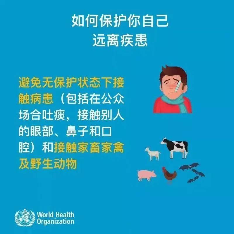世界卫生组织建议保持基本的手和呼吸道卫生,养成安全的饮食习惯,并在可能的情况下,避免与表现出呼吸道疾病症状(例如咳嗽、打喷嚏)的人密切接触。