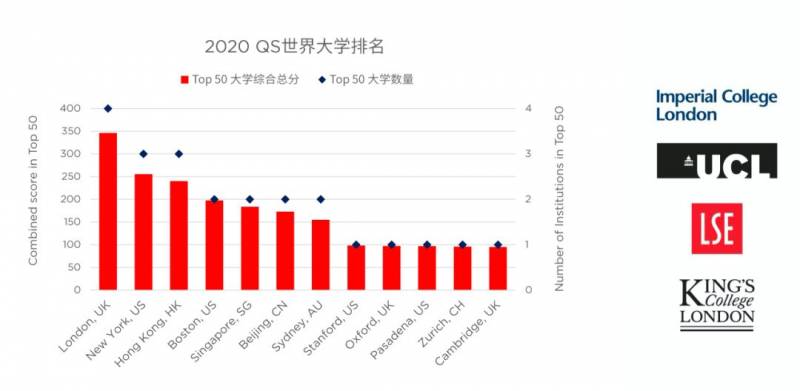 作为现代教育的发源地之一,伦敦的教育底蕴极为深厚,超过45所高等院校坐落在这里。有顶级的综合性大学,也有世界一流的专业学院。全球大城市拥有QS排名前50的大学的数量,伦敦以4所名列第一。