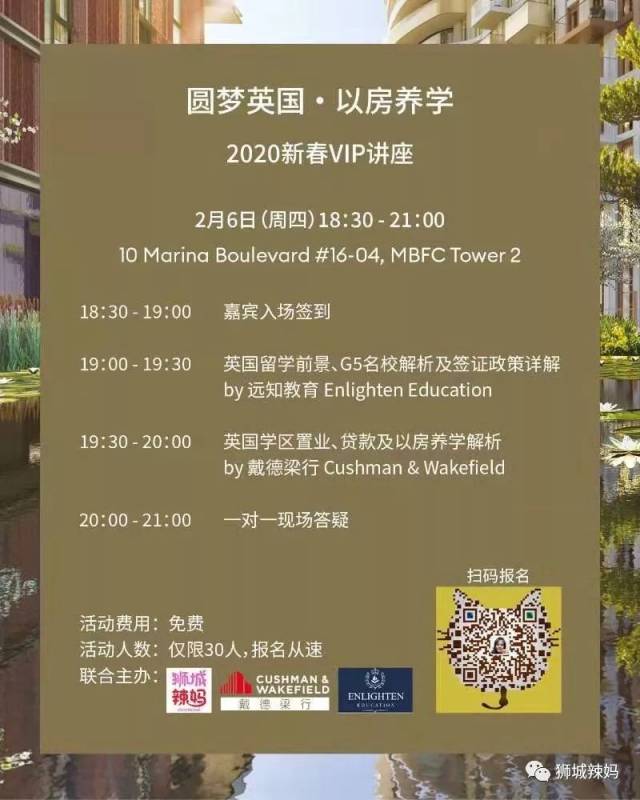 小众精准讲座,只开放30个名额。如果你对留学英国、以房养学感兴趣,扫描下面的二维码报名吧!