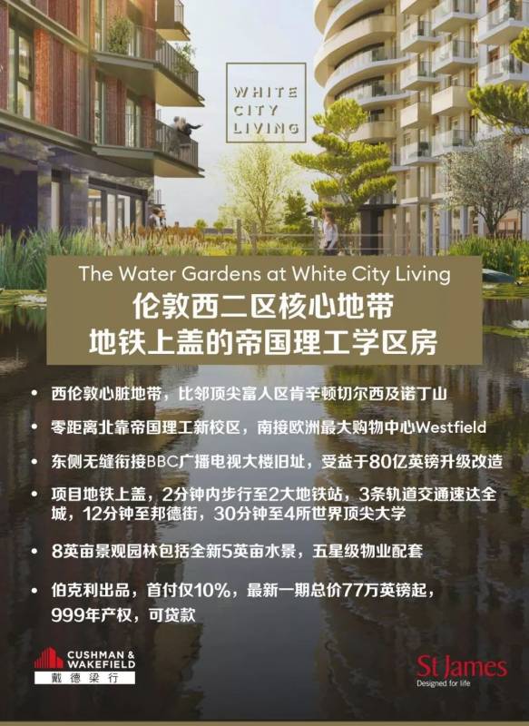 讲座重点二: 推介伦敦西区最具价值和最受大家青睐的热门学区房——White City Living的最新一期The Water Gardens项目。