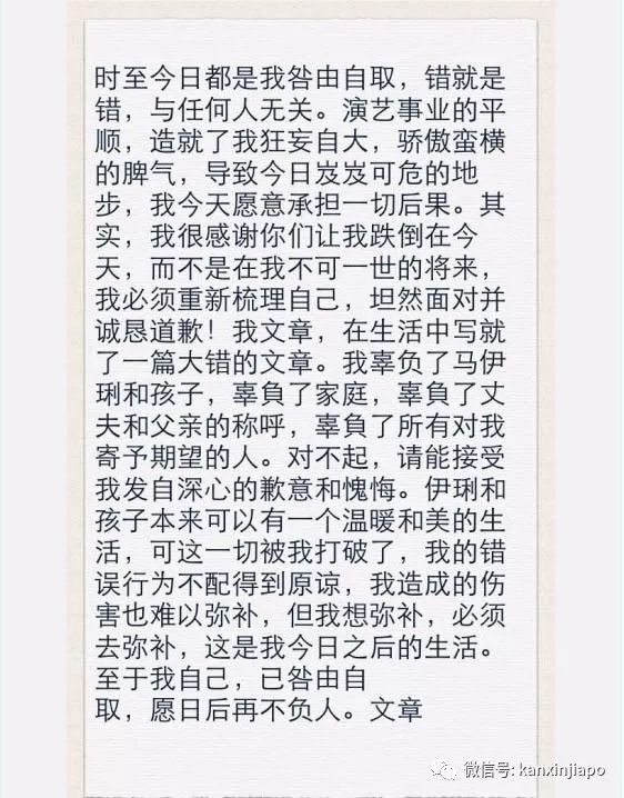 当时文章情深意切地发了条微博,向马伊琍认错。