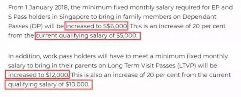 给父母申请长签,主申的月薪申请标准从10000新币上调至12000新币。