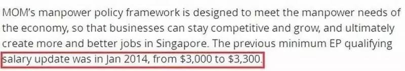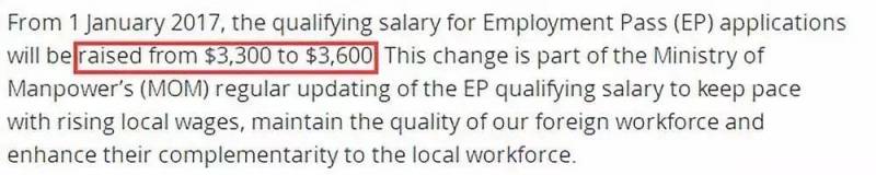 就业准证的月薪申请标准从3000新币上调至3300新币。