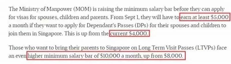 给父母申请长签,主申的月薪申请标准从8000新币上调至10000新币。