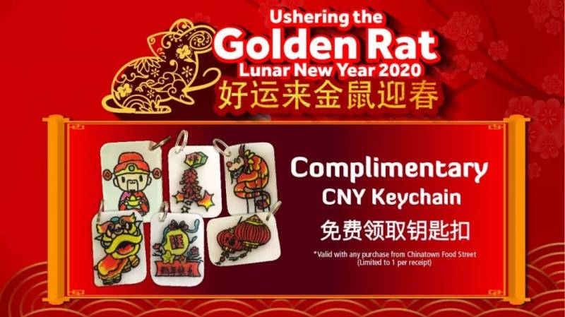 好运来金鼠迎春,凭当天在牛车水美食街消费的收据在指定摊位免费领取新春钥匙扣。