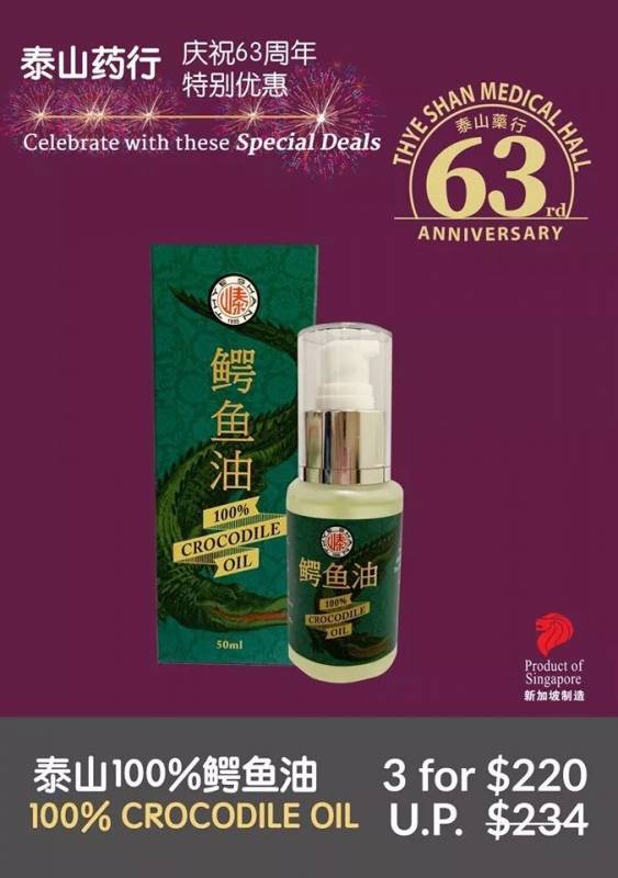 本地的传统中草药产品及补品品质佳,是新春佳节的送礼佳品,现店内的鳄鱼油3瓶仅需$220新币,新春佳节就Pick点实用的吧!