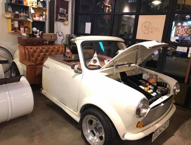 去Brunches Cafe就像是一个寻宝探索。从旋转式拨号电话到留声机,在这个古老的咖啡馆里,你能随处就能寻到宝藏。这家咖啡厅最大的宝藏就是这个翻新的mini Cooper ,车的座椅转换成一个座位。这里就是适合打卡朝圣的地方!