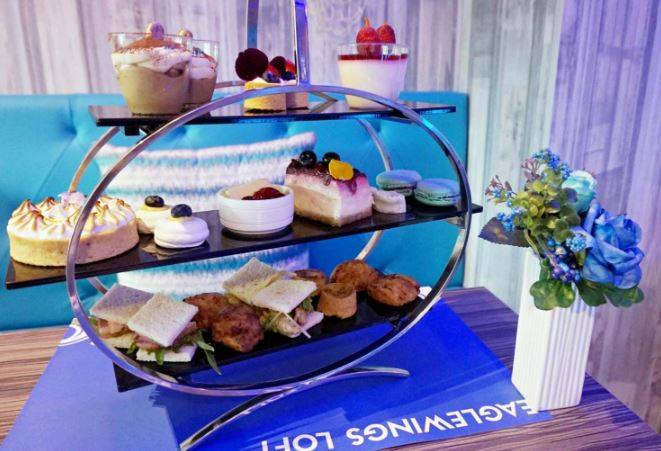 一旦你被安置好位子了,你就可以悠闲靠在皮沙发上,吃上一顿早午餐茶点套餐(两个人$36++)。