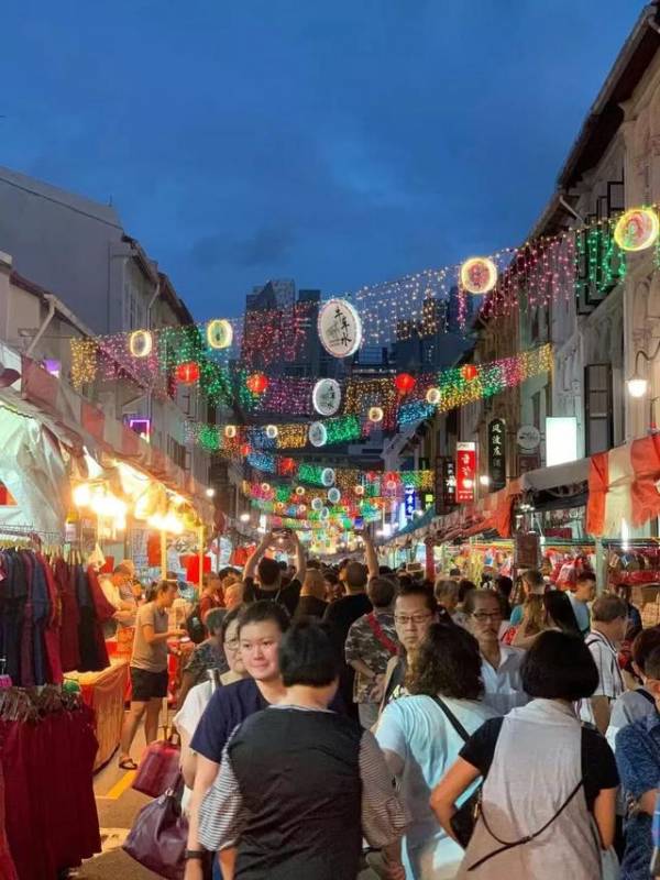 从农历新年的至少1个月前开始,牛车水的亮灯活动拉开过年序幕,街头两边挂满设计精美的灯笼,各路游人争相合影留念。