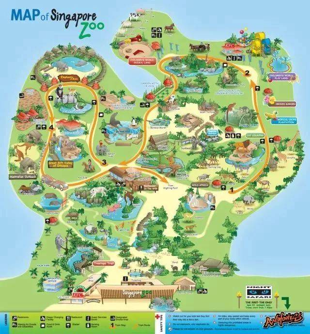 夜间野生动物园(Night Safari),新加坡动物园(Singapore Zoo)、河川生态园(River Safari)和裕廊飞禽公园(Jurong Bird Park),各园区都各有特色。除了最早建立的裕廊飞禽公园,其他三个公园都在一起,足以让你逛动物园“从白天逛到黑夜”。