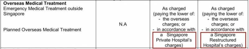 2. 新加坡标准按照保单购买的类型,以公立医院或私立医院的标准报销。