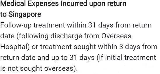 在新加坡购买的个人医疗保险有一项称为“Emergency Medical Treatment outside Singapore”,它的具体定义为: