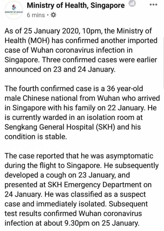 爆!新加坡首例武汉肺炎患者的家人,3人刚刚在马来又被确诊!116名武汉乘客被遣返?辟谣了...