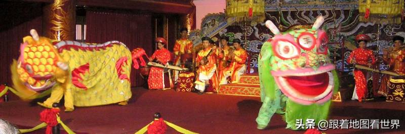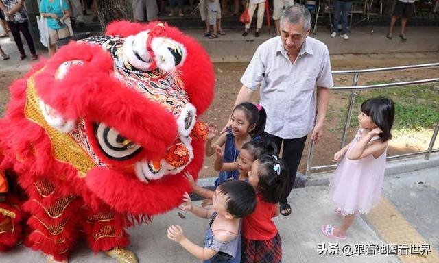 “采青”是福气与财富的象征,这些采青表演的狮子称为南狮,南狮醒狮团普遍分布在新加坡、马来西亚、泰国、英国、加拿大等地。虽然越南有自己的狮子造型,但当地华人所舞的依旧是传统南狮。