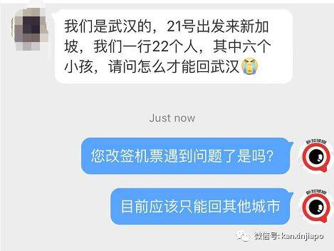 点击图片,查看详情消息发出后,有许多滞留新加坡的武汉人向新加坡眼求助,表示自己订购返回武汉的机票已经取消,回不去家不知该怎么办。