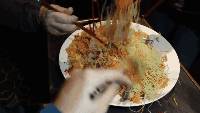 家人团聚在桌边、用筷子搅拌“鱼生”,最好能将鱼生连同蔬菜丝搅拌后高高举起,并说出祝福语“捞喜、捞喜”,拉越长代表运气越好、也有长寿的寓意。