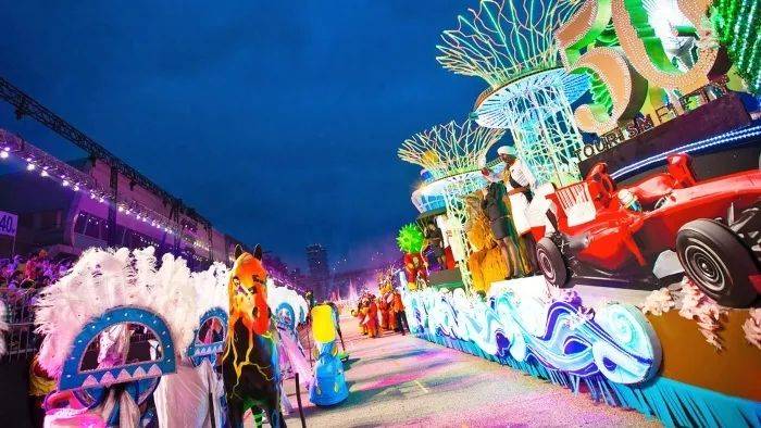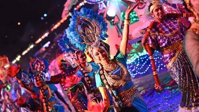 舞蹈、彩车、舞狮、舞龙等方式相互融合