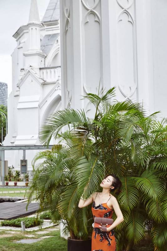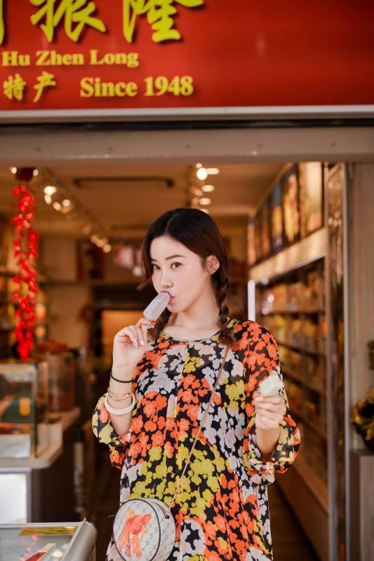 来热带地区度假怎么能少得了碎花裙呢。McQAlexanderMcQueen是品牌副线,风格比较年轻化,这件面料超级飘逸舒适,在牛车水拍照很适合拍出复古风。