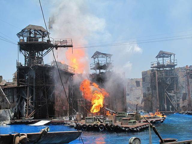 这是一个定时的节目表演,所以要看好节目表的时间。就那么点大的地方,有拉条绳子在空中飞来飞去的,有骑水上摩托翻转的,有炮火飞船的……简直叹为。不过小心不要坐到前五排,会被表演人员用水泼得全身湿透哦。