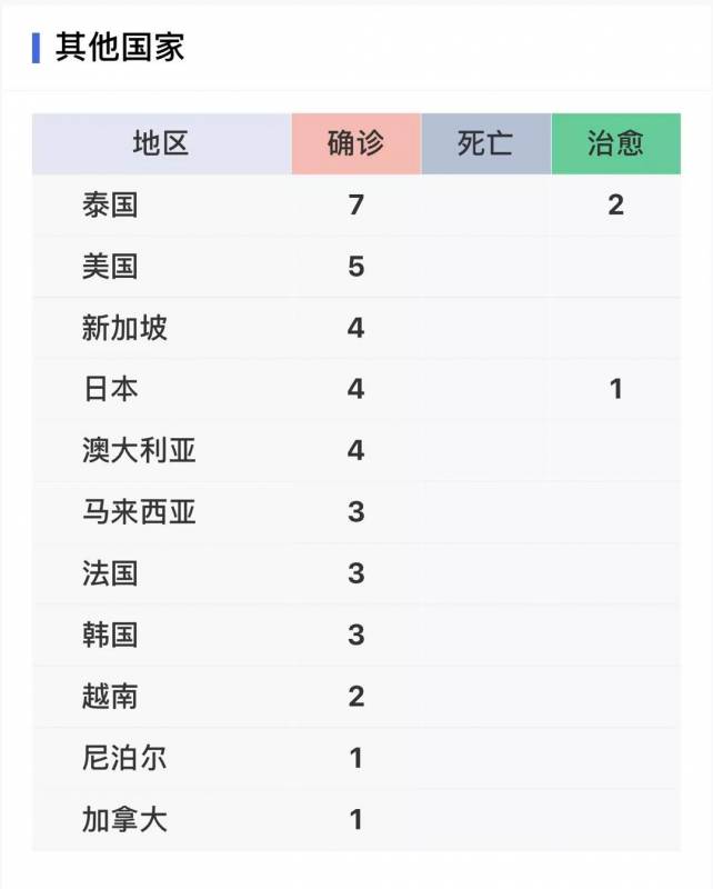 海外的疫情情况来看,泰国的确诊病例最多,达到了7个;另外新加坡也出现了4个确诊病例。