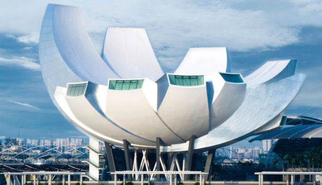莲花艺术科学博物馆外形似莲花 于2011年开业这是世界上第一座艺术科学博物馆,由加拿大籍以色列裔建筑师萨夫迪(Moshe Safdie)执笔设计。但其实另有其他意象,像是一只手掌,手指头向天空延伸,曾被称为新加坡欢迎之手。
