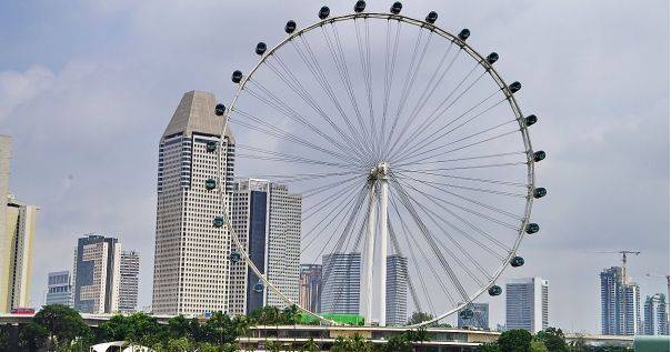 42层楼高的新加坡摩天轮的轮体直径达150米,总高度达到165米。这一高度超过了160米高的南昌之星和130米的伦敦眼。摩天轮坐落在滨海中心填海得到的土地上,从摩天轮上可以饱览新加坡市中心之外,还能远眺直到约45公里外的景色,包括印度尼西亚的巴淡岛、民丹岛,以及马来西亚的柔佛州。