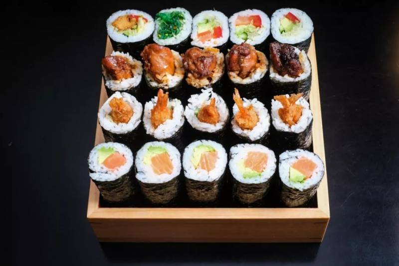 菜单包括20多种不同的寿司卷组合,蔬菜,肉或鱼的混合物。价格范围从S$2.6到3不等。每条卷都可以被切成4片。每晚6点之后,还有促销,买2卷送1卷。
