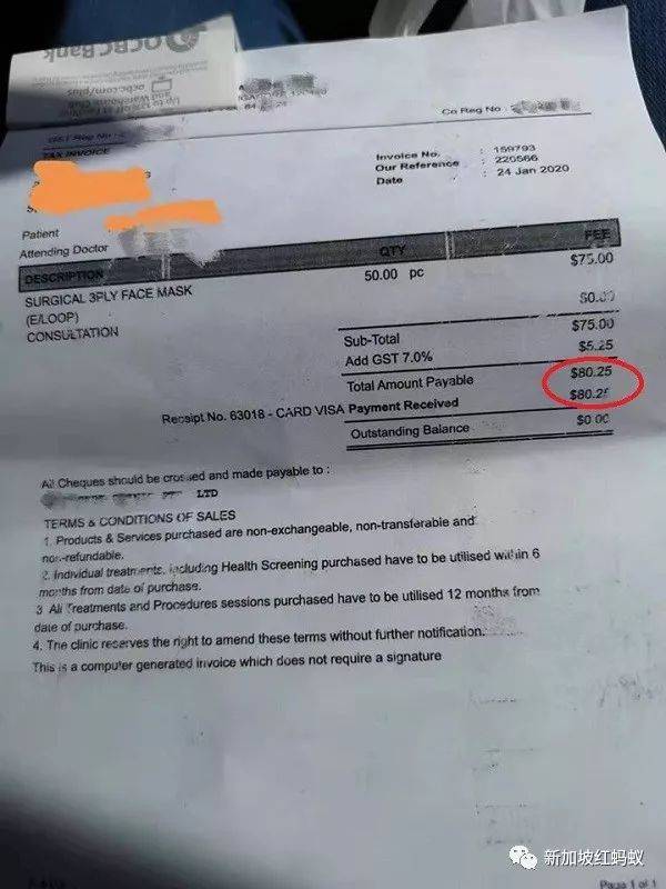 就在苦恼该上哪里找口罩的时候,她在商场附近看到一家多功能诊所,进去一问,对方说有卖口罩,但一个手术口罩售价是1.5新元,一盒50片要价75新元。