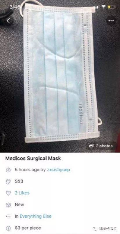新加坡西部某诊所一盒50个手术口罩卖超过400人民币,还称没起价