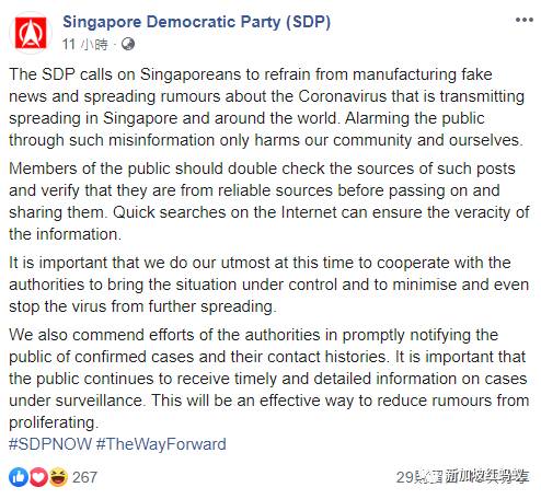 本地两个反对党工人党和民主党也不约而同发表声明,呼吁国人切勿散播假信息。