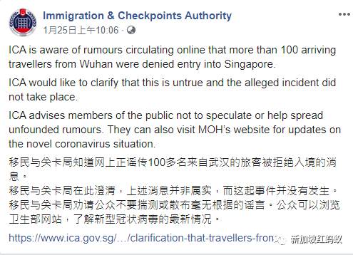 移民与关卡局也在面簿辟谣,强调上述流言并不属实。