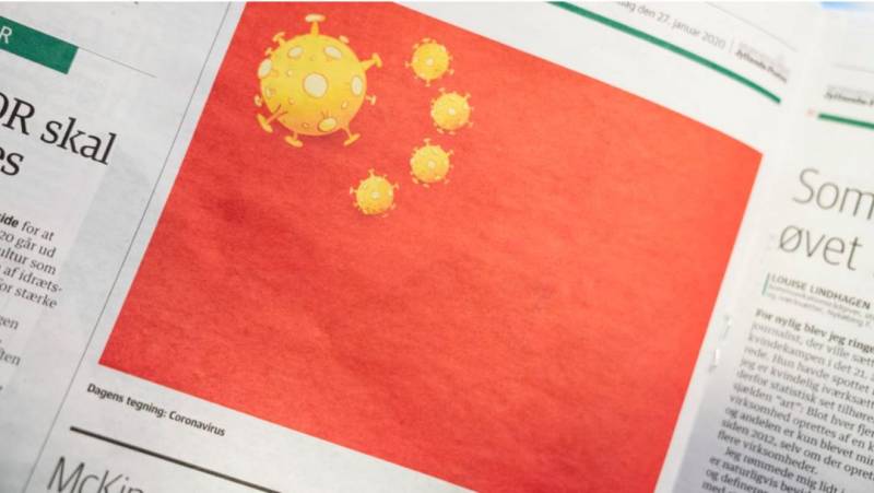 丹麦报社把中国五星红旗换成5枚新型冠状病毒的图案