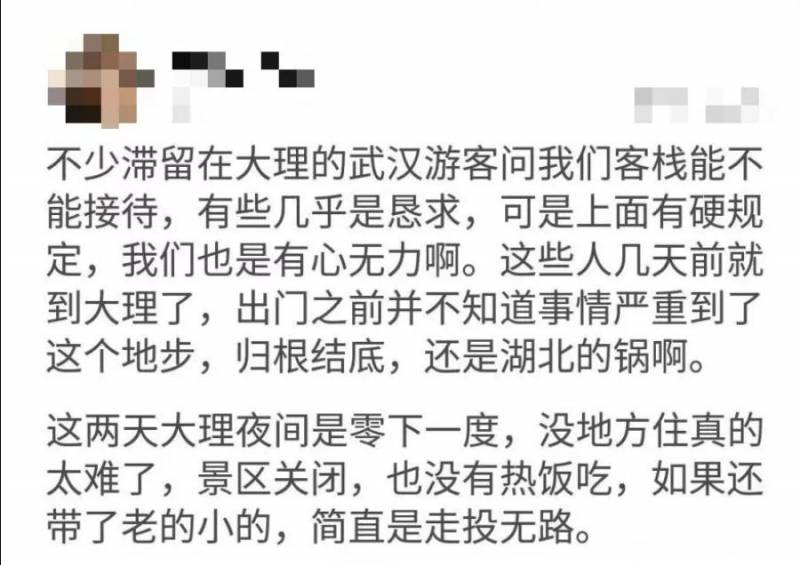 有从国外旅行回国,在国外还好好的,回国了反而被驱赶来驱赶去,拖着箱子到处找酒店,最后被警察带到了收容所。朋友绕路无数,终于接回湖北。