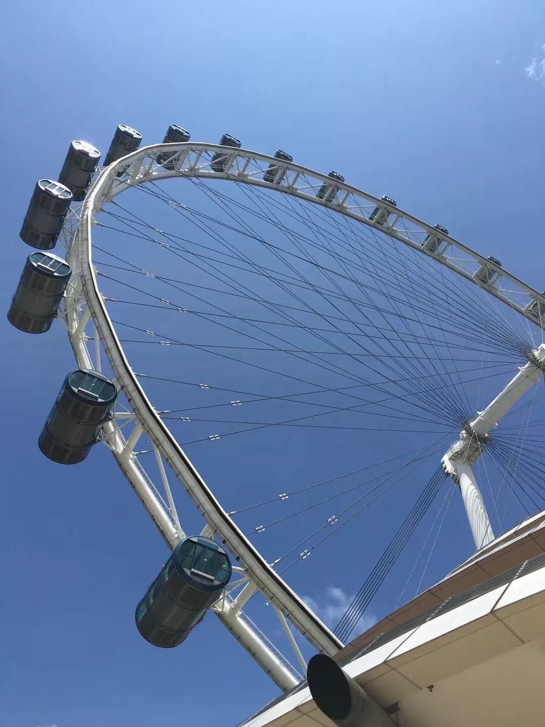 新加坡摩天观景轮高165米,是世界上最高的摩天轮之一,除了新加坡城景,还可以观赏到部分印尼岛屿风光。