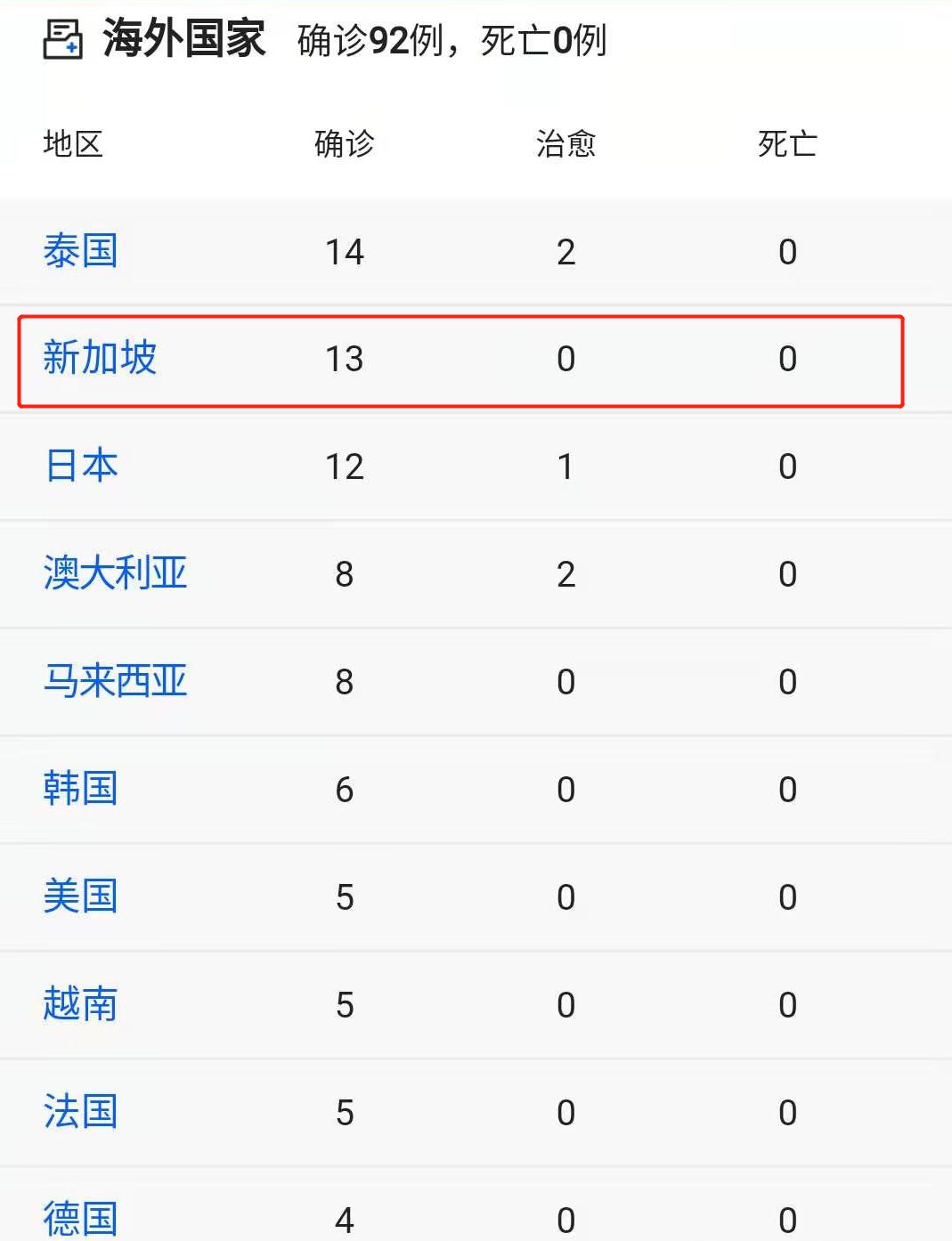 截止发稿,新加坡已确诊13个病例: